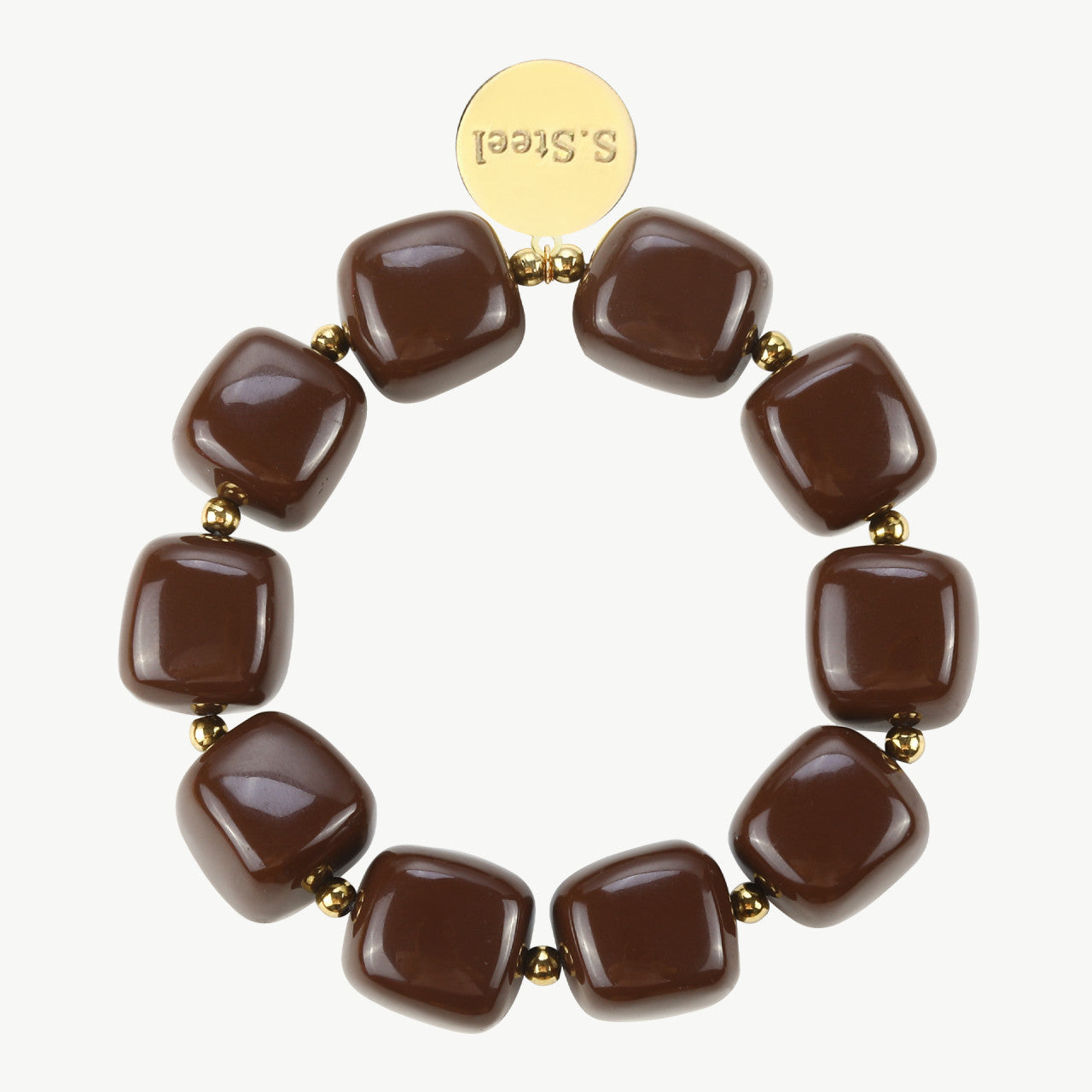 Das Big Cubic Pearly Armband vereint voluminöse, quadratisch-abgerundete Perlen mit einem sanften Glanzfinish in modernem Coffee Brown. Der warme Farbton sorgt für eine luxuriöse, harmonische Ausstrahlung und lässt sich sowohl mit goldenen als auch neutralen Tönen perfekt kombinieren.