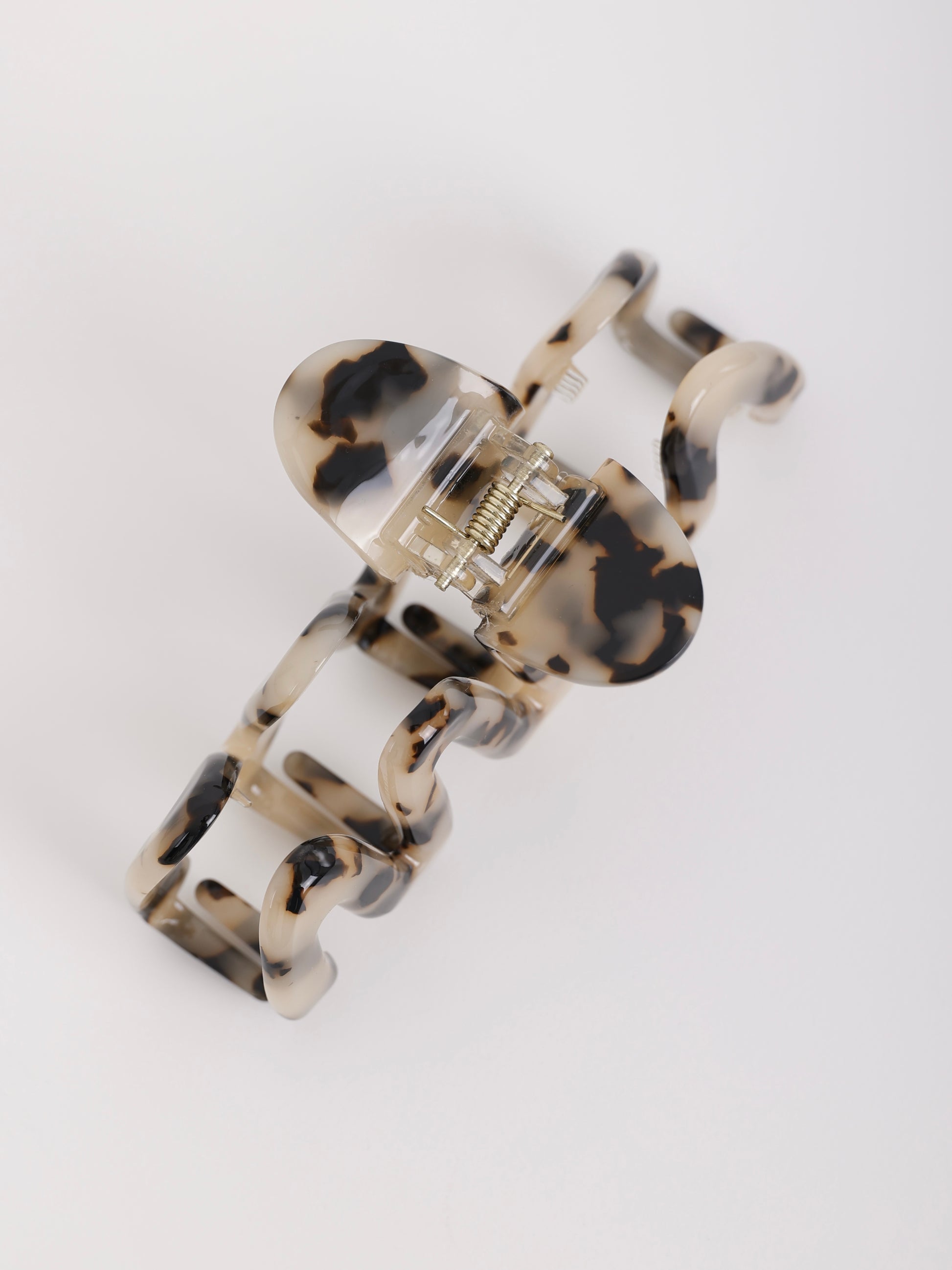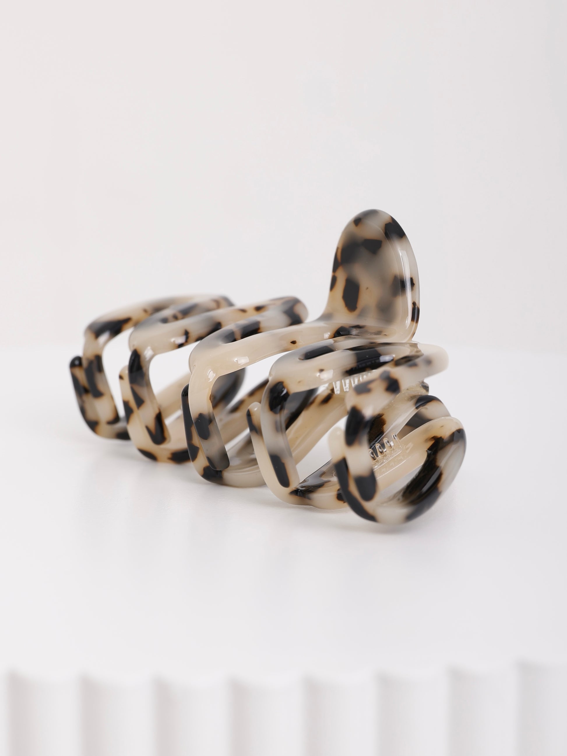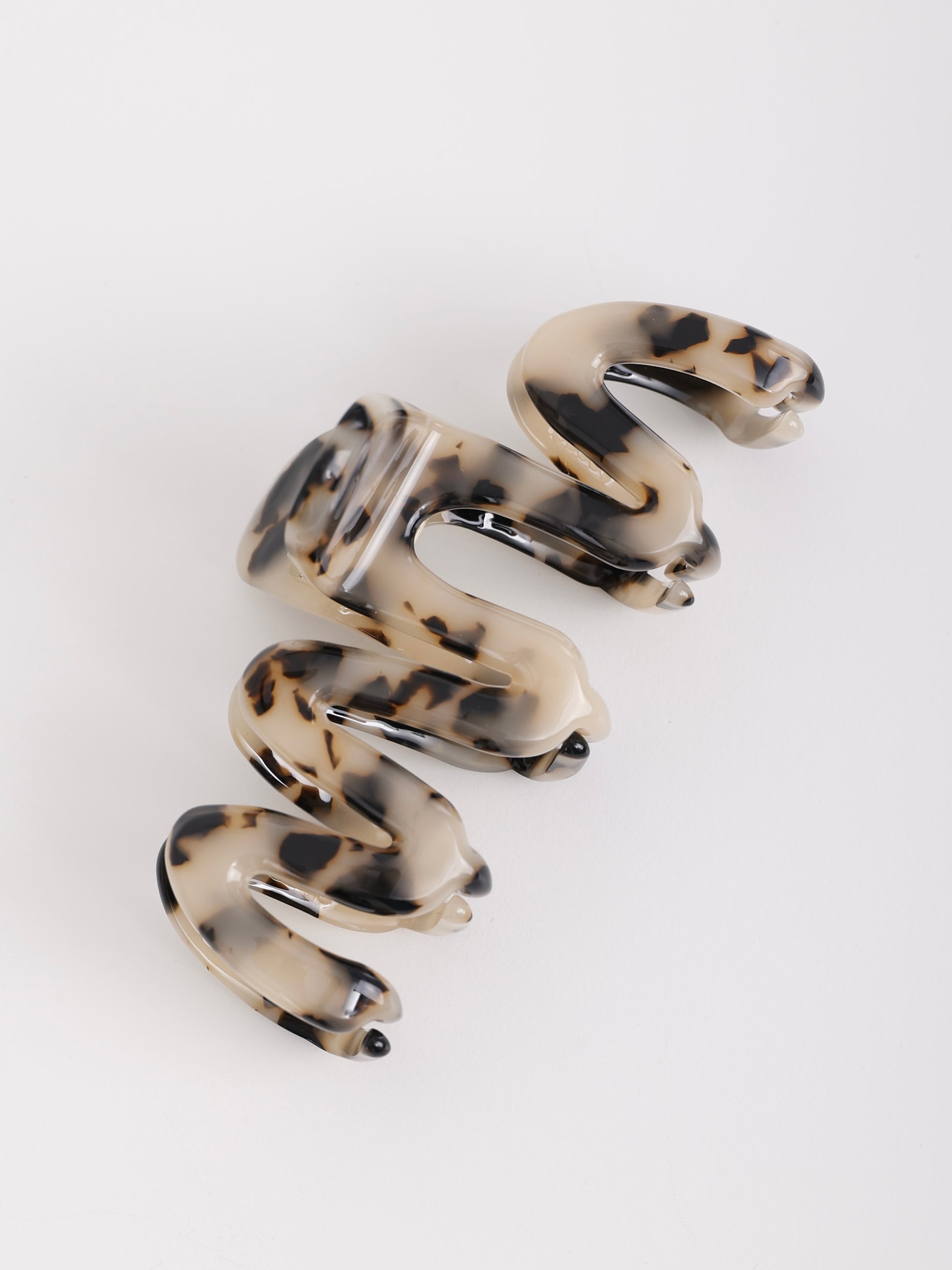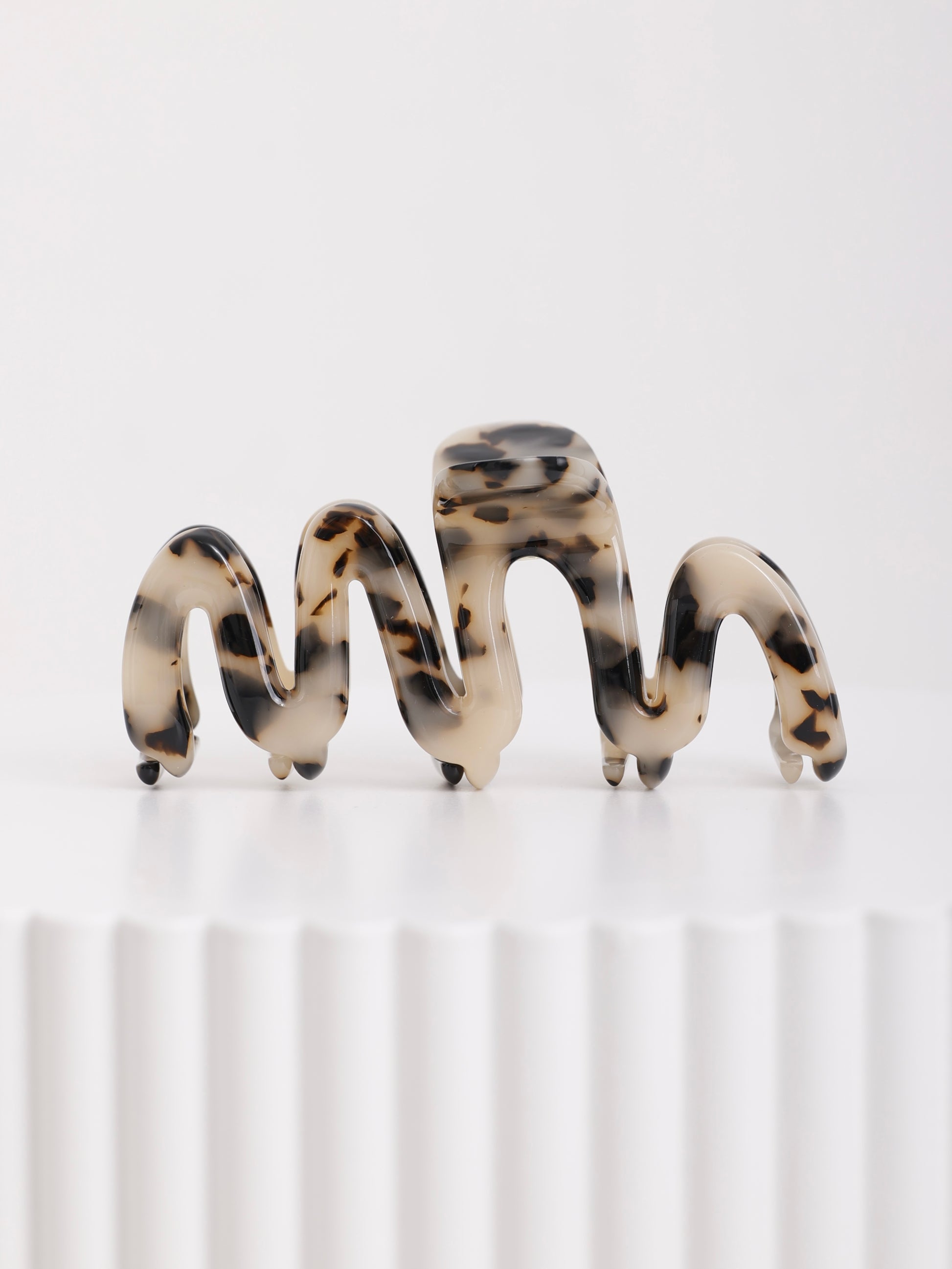 Der Wave Clip – Leo überzeugt mit seinem wellenförmigen Design und dem modernen Leo-Muster in Beige- und Brauntönen. Er sorgt nicht nur für einen sicheren Halt, sondern setzt gleichzeitig ein modisches Statement – perfekt für jeden Look, ob casual oder elegant.
