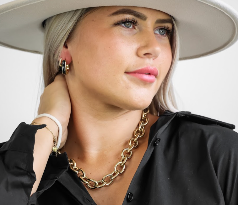 Ihr edles und emblematisches Design passt perfekt zu unseren Ohrringen BLACK DANA und sorgen für einen vollendeten Look.