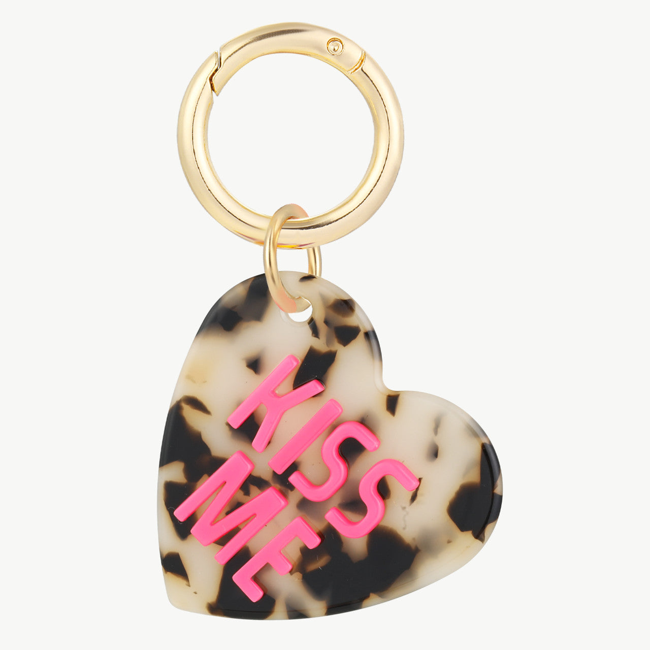 Der KISS ME Anhänger kombiniert edles Leo-Acryl mit einem leuchtenden pinkfarbenen Schriftzug und einem 14 Karat vergoldeten Ring. Ob an deiner Handtasche, am Schlüsselbund oder als kleines Highlight am Rucksack – dieser Anhänger sorgt garantiert für gute Laune und einen Hauch Glamour im Alltag.