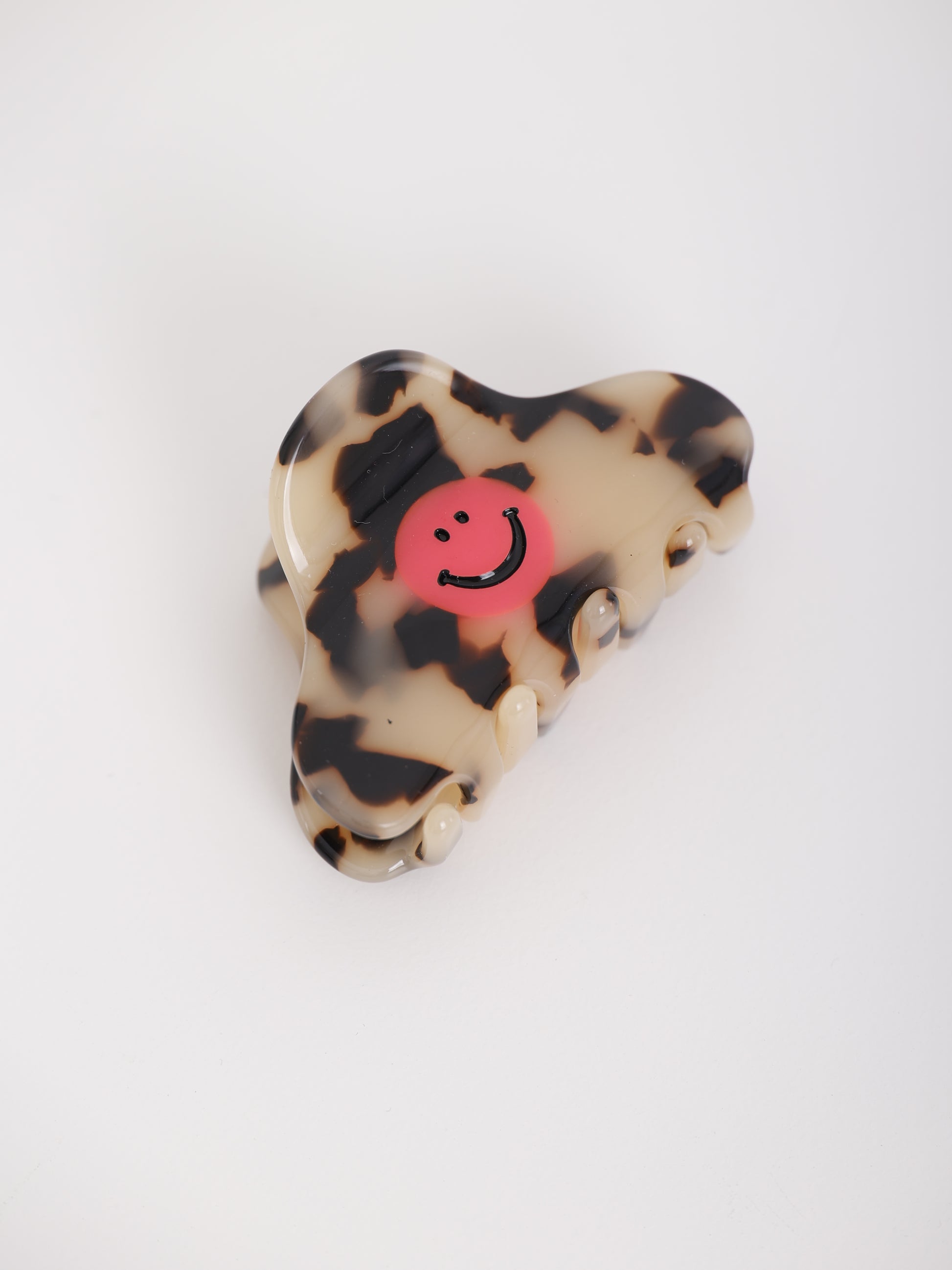 Die MIDI Smiley Clip ist das perfekte Accessoire für deinen Everyday-Look. Mit ihrem trendigen Leo-Muster in Schwarz-Beige und dem leuchtend pinken Smiley bringt sie sofort gute Laune in dein Haarstyling. Ideal für halboffene Frisuren oder um feine Haarpartien stilvoll zu fixieren.