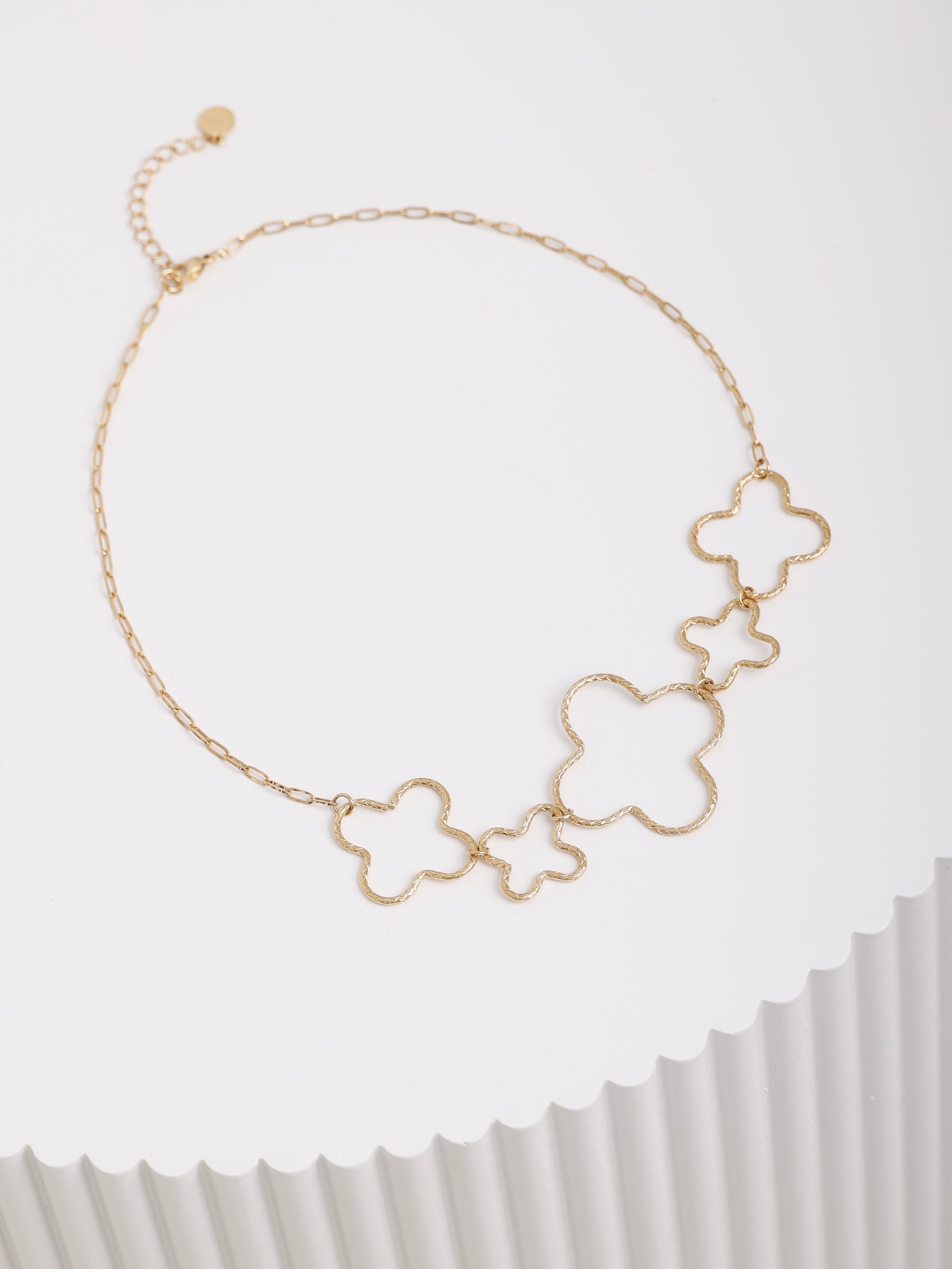 Golden Bloom Choker – Halskette mit strukturierten Blüten-Elementen