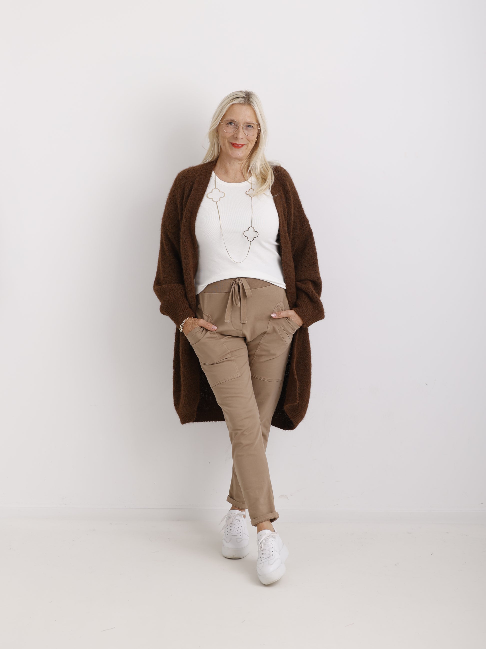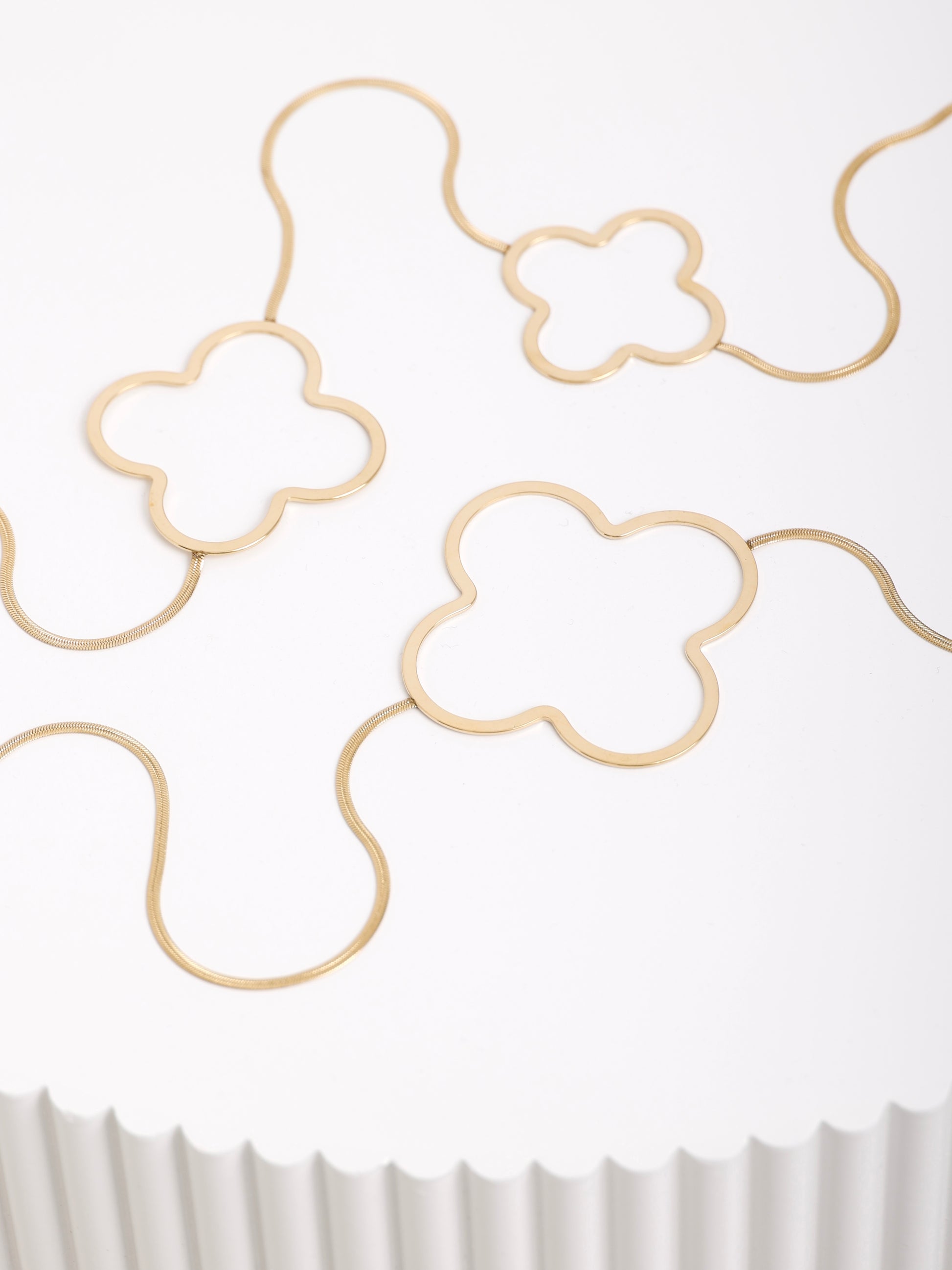 Die Golden Bloom Necklace wirkt besonders schön solo getragen. Für einen harmonischen Look lässt sie sich wunderbar mit den passenden Ohrringen kombinieren – etwa den auffälligeren LUCKY Ohrsteckern oder den dezenten MARIA Hängeohrringen, beide im passenden Blüten-Design.
