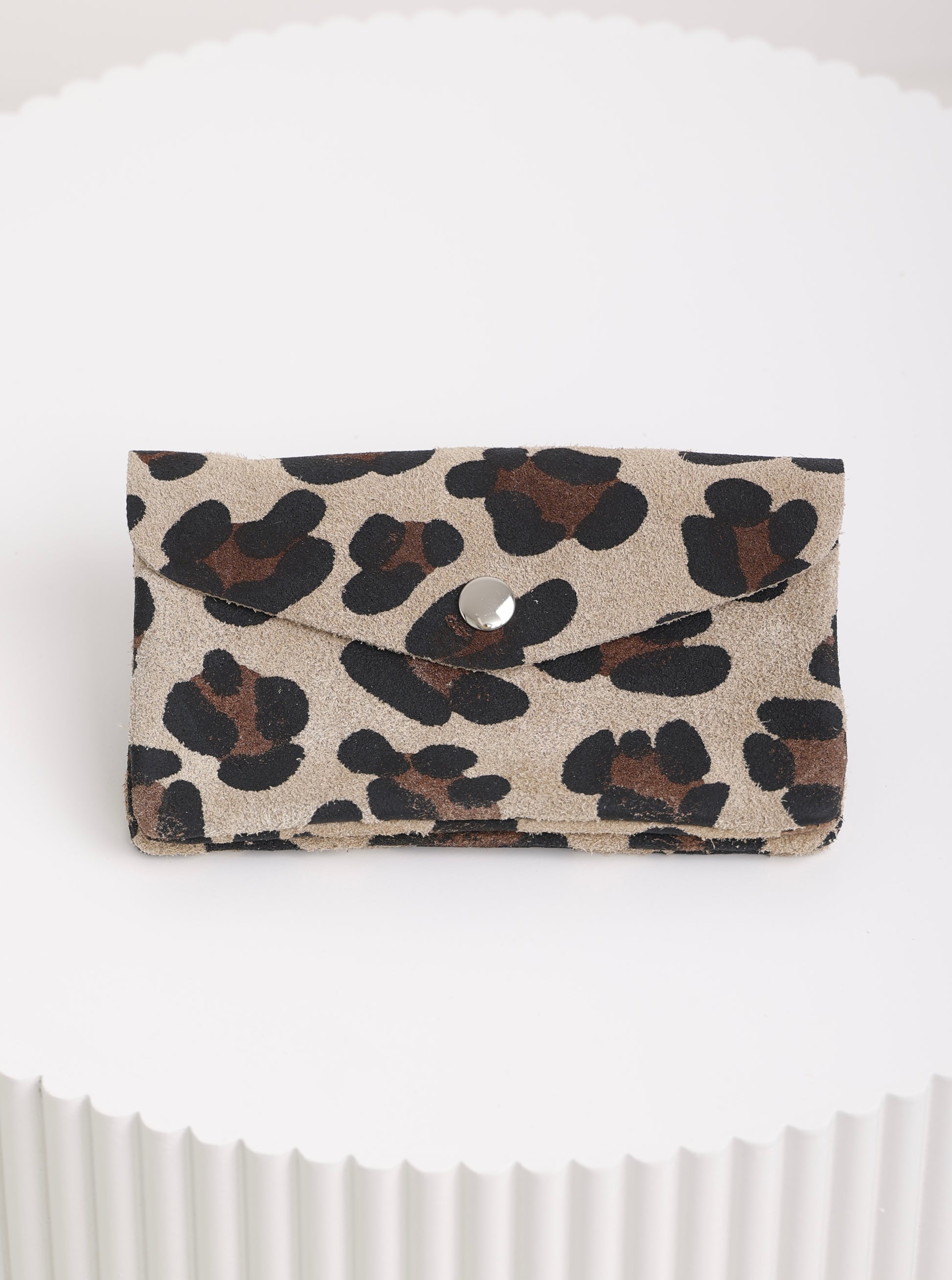 Diese elegante Geldtasche aus weichem Wildleder kombiniert zeitlose Natürlichkeit mit trendiger Animal-Optik. Erhältlich in zwei Varianten – klassischer Leoprint oder markanter Cow-Look – ist sie ein stilvolles Accessoire für jeden Tag. Drei Fächer, eines davon mit Reißverschluss, bieten ausreichend Platz für Karten, Münzen und kleine Essentials.