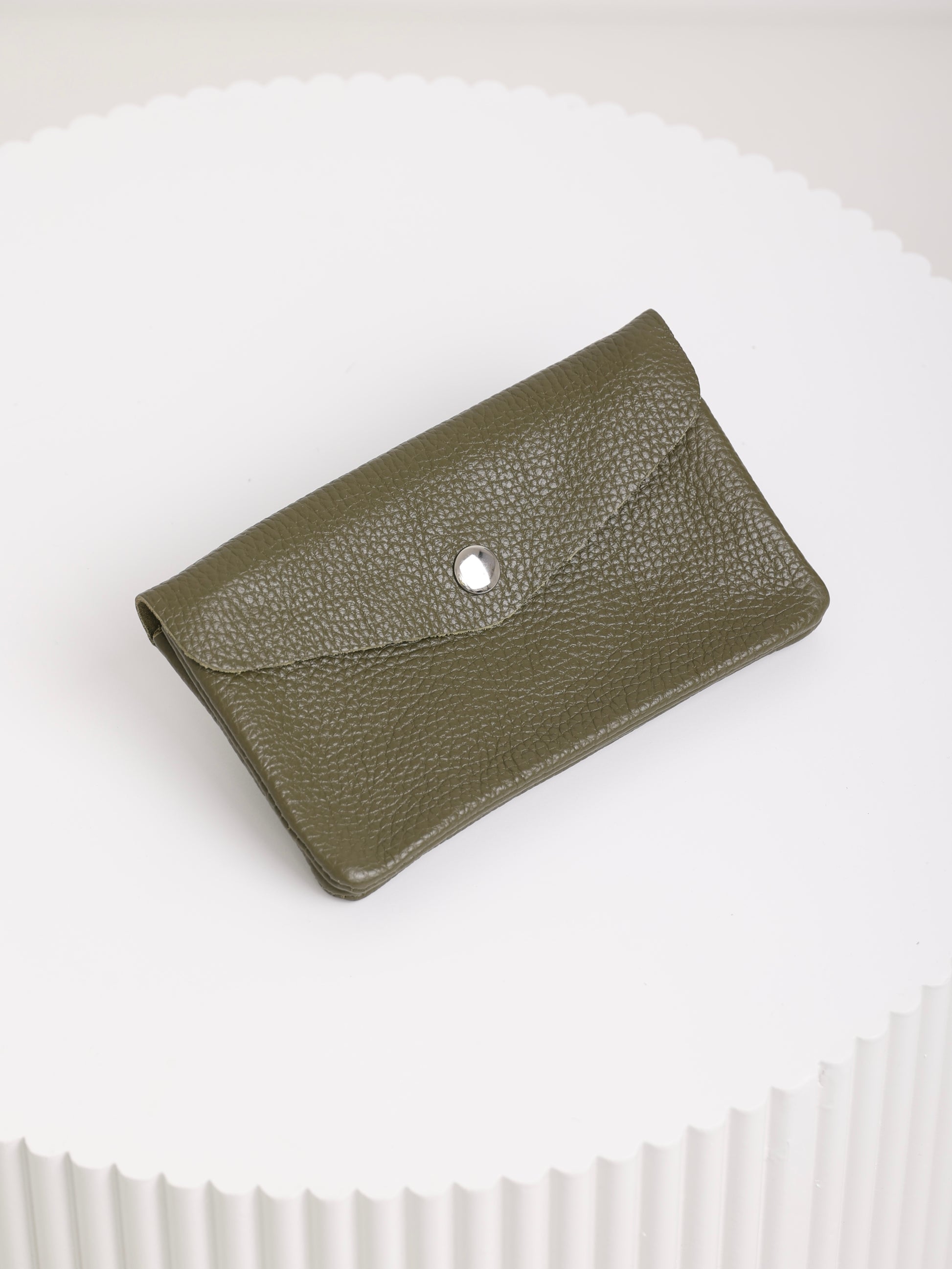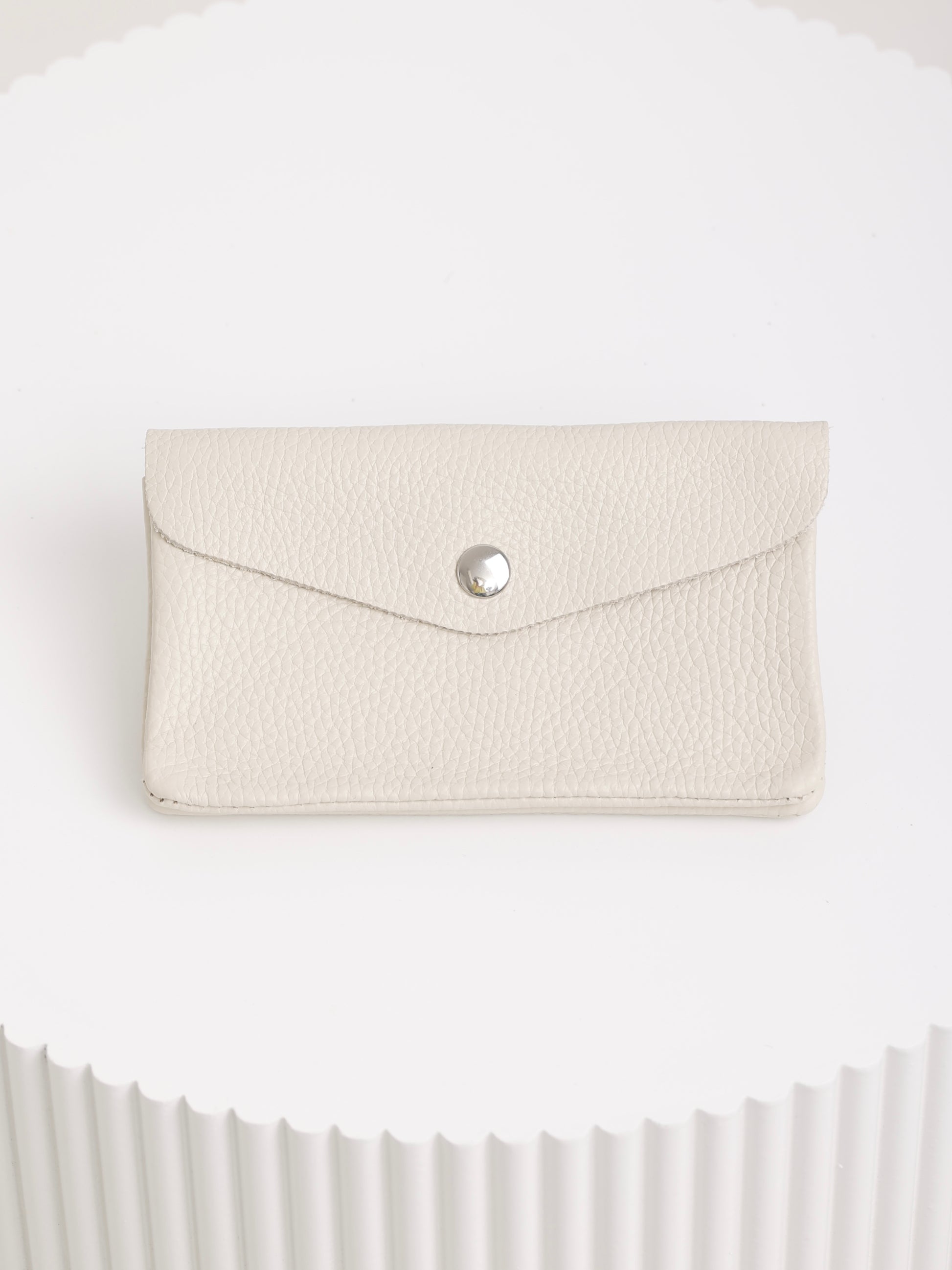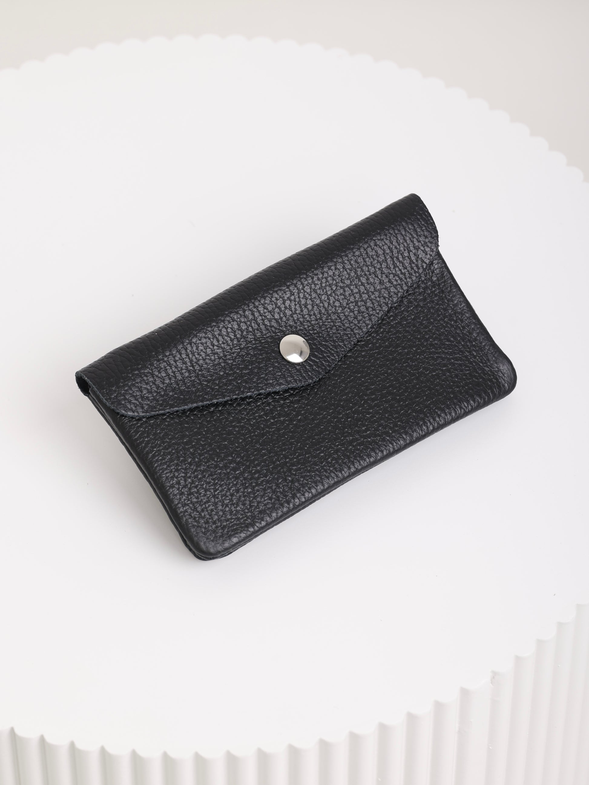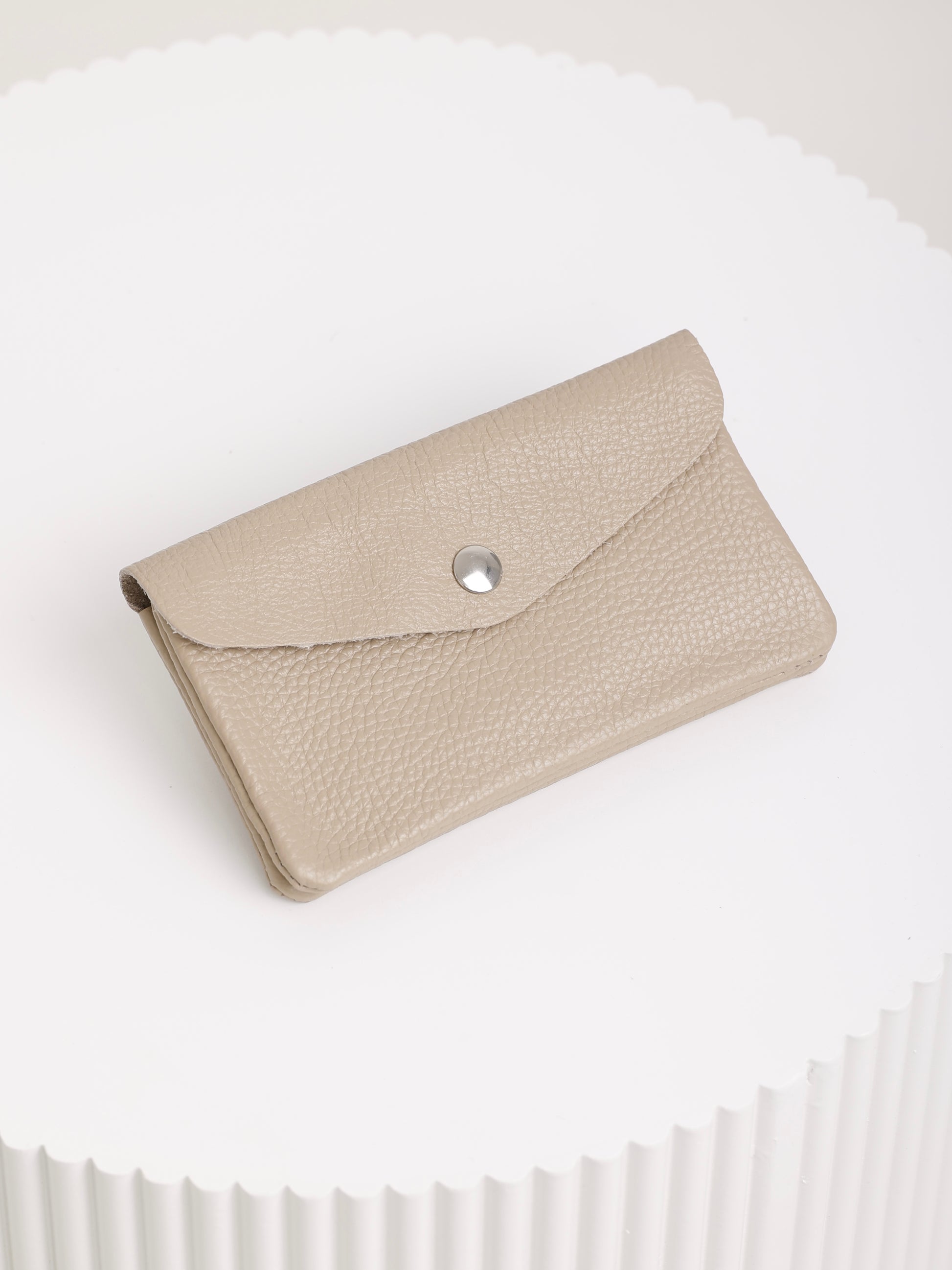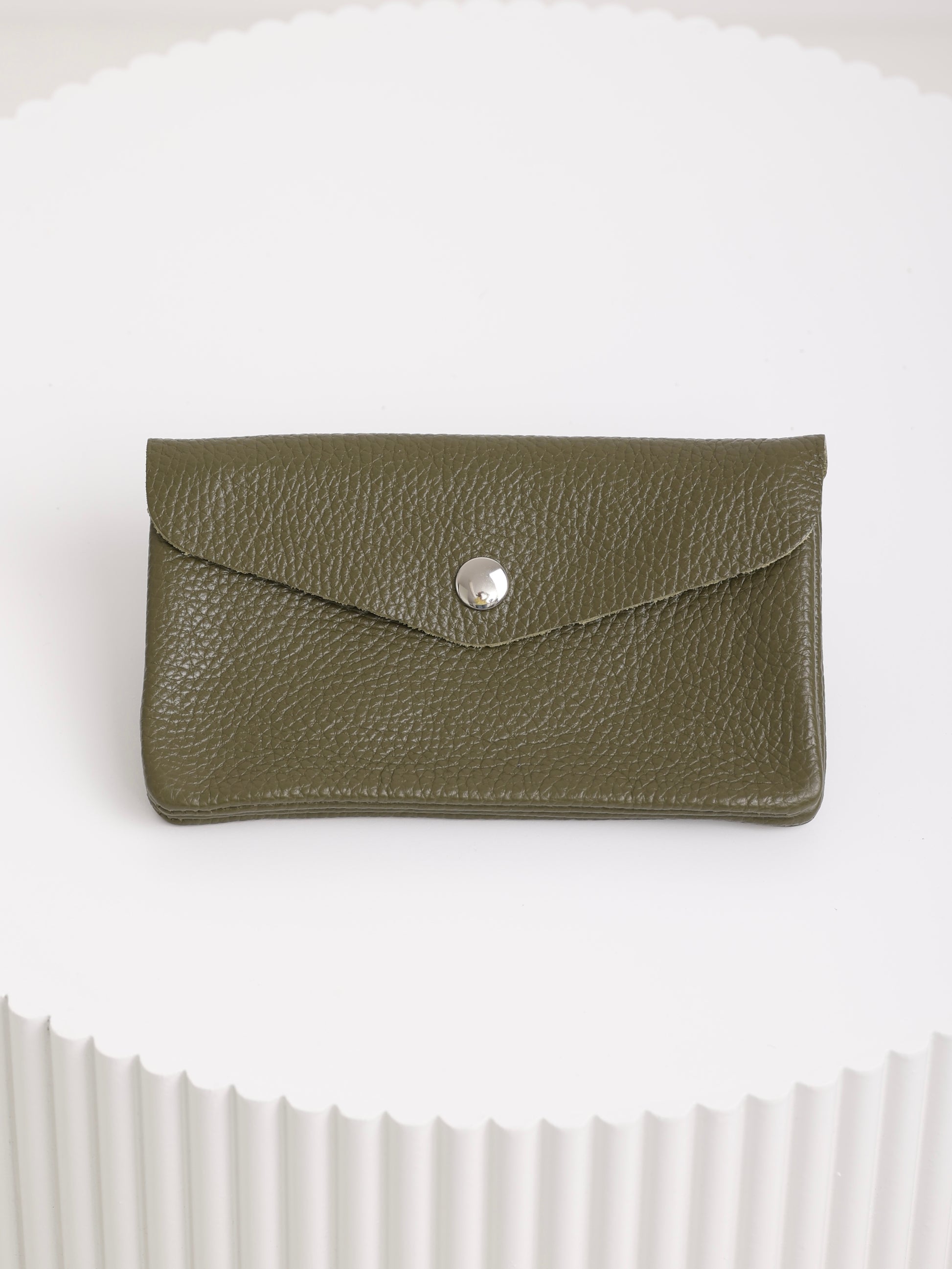 Das Luxe Purse überzeugt durch sein edles, genarbtes Echtleder und die klare, minimalistische Form. Die längliche Größe bietet genug Platz für Karten, Münzen und kleine Essentials, während drei Fächer – eines davon mit Reißverschluss – für Ordnung sorgen. Der Druckknopfverschluss rundet das Design elegant ab.